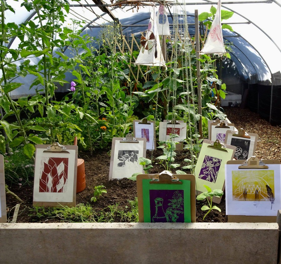 The results were stunning and today we are going to share some of the processes we went through to create our Boundary Way prints! !Printing and the sketching taking place in preparation Printing and the sketching taking place in preparation[/caption] The first thing Linda did was to introduce everyone to some of the prints that she had created at Boundary Way and we went on to discuss the different techniques used to create each of them. Inspired, everyone then grabbed a clipboard, pencil & paper and set out to sketch some ideas from the Community Garden surroundings. Everyone came back with completely different original ideas and that is one of the great things about taking inspiration from what you see, everyone sees things differently. !Cutting the Lino Cutting the Lino[/caption] Once we had decided on our final designs, advised by Linda, we then set to work transferring the work onto the lino. When we had our designs and we were happy with them, we all set to work cutting them out with the lino cutting tools. This can be quite a time consuming process but, luckily, it was nice and warm in the polytunnel, which softened up the lino making the it far easier to cut. Linda had also created some brilliant cutting boards to help avoid injuries and everyone had soon got their designs ready for printing. !Howard taking inspiration from the trees Plotholder Howard taking inspiration from the trees[/caption] To print everyone's designs we moved over to the shed, where the inks and equipment had been earlier set up. Each participant was given ink, a roller, an ink tray, a pack of paper and a wooden spoon. Linda did a demonstration of how to achieve the best print from our lino and then off we went! We applied ink to our lino with the rollers, then placed it face up on a marked out piece of paper. We then aligned our printing paper with the marking sheet and pressed in onto the front, inked up face of the lino and this is where the wooden spoons came in. Linda demonstrated how rubbing the back of a wooden spoon onto the design can transfer it evenly. It took a bit of trial and error, but after a few attempts everyone was creating wonderful prints. !Some of the resulting prints, hung up to dry in the shed Some of the resulting prints, hung up to dry in the shed[/caption] A selection of the participants stunning prints were shown at our Heritage Open Day, alongside Linda's work that has also been inspired by allotment. It was great to be able to show the prints in the environment that they were inspired by and we hope to continue to create art with its foundations in the landscape of Boundary Way.