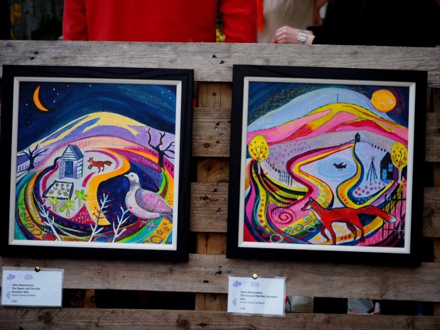 Through funding from the Arts Council, our artists have been able to run workshops, attend events and take time to discover the essence our beautiful site. This has resulted in some stunning artwork, including some from Clare, which was displayed at our 'Sense of Place' exhibition. Today we are going to delve deeper into Clare's work at Boundary Way and share more information about her amazing workshops and artwork with you. !Clare running a workshop, preparing everyone to explore the allotment through art Clare running a workshop, preparing everyone to explore the allotment through art[/caption] During her time with us at the allotment Clare has run several, different creative workshops and through these has provided the project team, and her fellow artists, with inspiration and new ideas. Her hugely successful 21 Steps workshop was a chance for us all to explore the site in a way that we had never explored it before, using art and travel to give us a better understanding of our beautiful allotment. For the workshop, Clare gave everyone a previously prepared, empty concertina sketchbook and instructed us to choose a number of steps to take. We then took our sketchbooks and our art materials and began our journeys around the garden, taking a certain number of steps and then stopping to draw whatever these steps led us to. Everyone was amazed by the fresh ideas that this workshop bought to them, forcing them to create art from subjects they would normally overlook and the finished sketchbooks seemingly represented every aspect of Boundary Way bound together by a sense of place. We exhibited them in Moya Lloyd's shed during our 'Sense of Place' exhibition and they were a huge hit with the public. !The stunning results of Clare's 21 Steps Workshop The stunning results of Clare's 21 Steps Workshop[/caption] Clare has also run workshops in collaboration with another of our artists, the Brazilian storyteller Ana Lines. During their collaborative workshop Ana told a beautiful story to the group in the storytelling area and Clare then used this story to inspire her art activity, which involved us painting aspects of Boundary Way onto stones. These stones were then placed around the Community Garden, bringing our art into the nature that it was inspired by. Visitors on our most recent open day were then encouraged to look for the stones and work out their meanings. Collaboration is central to our ethos at Boundary Way and to see all of our artists working so closely together is something really special. !Clare's Landscape a Day Sketchbook, alongside others from Artists at the site Clare's Landscape a Day Sketchbook, alongside others from Artists at the site[/caption] Beside running workshops Clare also spent a lot of time at the allotment getting a feel for what we are all about and discovering the landscape around us through sketching. The time that Clare spent with us during the summer allowed her to brilliantly portray Boundary Way in her series of three acrylic paintings, each including local wildlife and landmarks from the allotments - such as the bright blue Camera Obscura Shed. Clare's vibrant paintings were inspired by the energy of the allotment and came from her fascination with the location of Boundary Way, with it being on the borders of Staffordshire, Shropshire and the West Midlands. These are all huge counties and this was reflected in the depth of Clare's paintings; alongside the inclusion of The Wrekin, which can be seen from the community garden. !Clare's Boundary Way Art at our Sense of Place Exhibition Clare's Boundary Way Art at our Sense of Place Exhibition[/caption] Alongside fellow artist Hannah Boyd, Clare has a beautiful studio in Wolverhampton's Newhampton Arts Centre. From here she paints in oil & acrylic and creates textile art, as well as creating illustrations for books and magazines - it really is a hive of activity. As well as running workshops at Boundary Way Clare also runs collaborative workshops with other artists in a variety of media, as well as running her own workshops and sketchbook club, all from her local studio. For more information visit clarewassermannart.com!More of Clare's work at our exhibition, with a workshop taking place behind it More of Clare's work at our exhibition, with a workshop taking place behind it[/caption] We have loved working with Clare and hope to continue to collaborate with her on more workshops and artwork in the future, as well as looking into the art of mindfulness. As previously mentioned all of our work with amazing artists like Clare has been funded through Arts Council Grants for the Arts to support research and development work to establish Boundary Way as a venue for community arts activity.