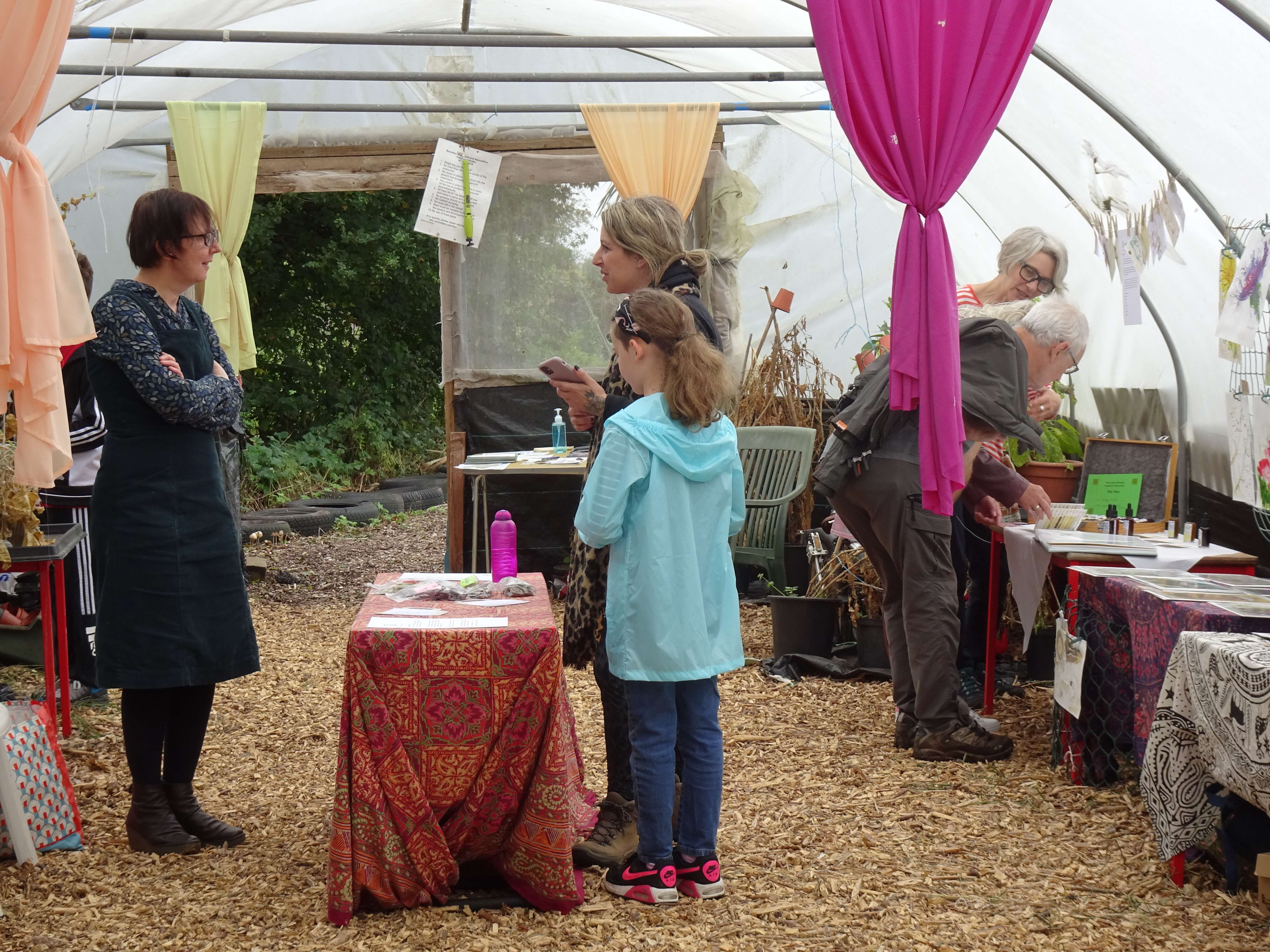 Floristry wasn't the only showcase of using seasonal flora and fauna, with postcards on display from the Botanical INKollective and a display of allotment award winning botanical inks and samples from artist Carolyn Morton. A collective that was created during lockdown in collaboration with Carolyn Morton, the group runs for anyone would like to make inks from plants and explore the results with others. An exciting, sustainable-minded medium with beautiful outcomes, we were delighted to share some of the art postcards created with botanical inks during the collective's summer postcard exchange and showcase the work of this group of passionate makers. Carolyn was able to join us on the day and as one of the driving forces behind the collective, she shared her knowledge with our intrigued visitors.